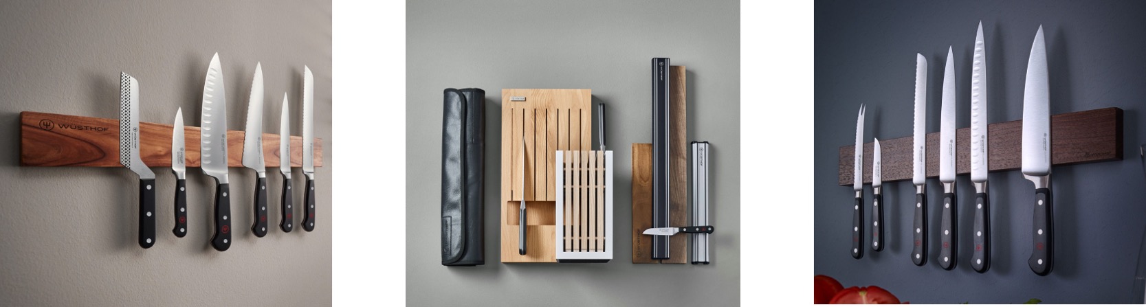 Dzięki tym niezwykle użytecznym akcesoriom, noże nie będą stykać się ze sobą czy innymi elementami wyposażenia kuchni. Są zawszew zasięgu ręki, z łatwym dostępem. Listy magnetyczne można przymocować do ściany lub do płytek. Wyjątkowo silne magnesy bezpiecznie utrzymują noże i oszczędzają miejsce robocze. Dostępne są w różnych długościach i wykonane z różnych materiałów. Bloki na noże WÜSTHOF to wyjątkowy i wygodny sposób na eksponowaniei przechowywanie ulubionych noży kuchennych. Poza funkcją bezpiecznego i wygodnego przechowywania noży ma również walory estetyczne. Drewniane bloki poddane są obróbce cieplnej,co wzmacnia materiał i czyni go zarówno antybakteryjnym,jak i wodoodpornym. Zapoznaj się z różnorodną ofertą blokówdo noży, zarówno tych wyposażonych w zestaw noży, jak i bez dodatkowych akcesoriów.