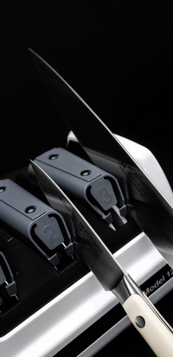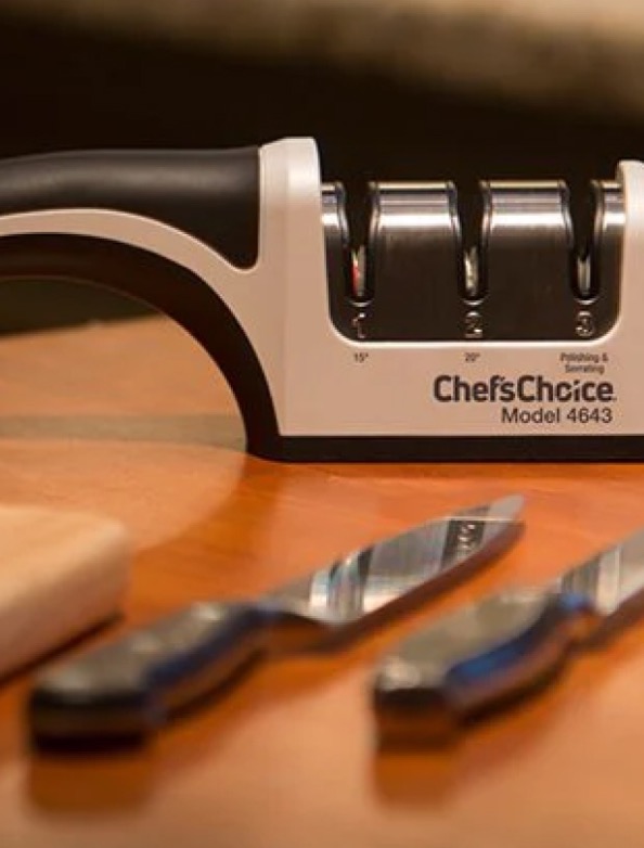 Firma Chef’s Choice opracowała proste w użyciu, niezwykle wygodne ostrzałki manualne, zapewniające idealnie naostrzone noże dzięki diamentowym dyskom. Stopień ostrzenia ostrza jest w nich z góry określony (15-20°), co jest niezwykle wygodne i zmniejsza ryzyko popełnienia jakichkolwiek błędów.