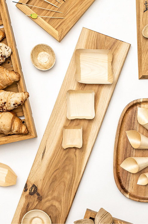 Verlo posiada ekologiczne rozwiązania dla jednorazowych naczyń, które są niezbędne podczas obsługi większych imprez. Kolekcja niewielkich naczyń jednorazowego użytku, przeznaczonych do przyjęć z bufetem typu fingerfood. Zastosowanie naturalnych surowców, jak bambus, drewno, papier czy trzcina, są naszą odpowiedzią na rosnącą potrzebę dbania o środowisko. Nasze elementy jednorazowego użytku są biodegradowalne lub nadają się do recyklingu, a surowce drewniane pozyskujemy z kontrolowanych upraw w Polsce.