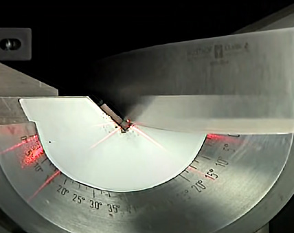 Każde ostrze poddawane jest przed ostatecznym ukształtowaniem precyzyjnemu mierzeniu przy użyciu lasera zgodnie z procedurą ostrzenia PEtec opatentowaną przez firmę WÜSTHOF. Dzięki temu określa się optymalny kąt ostrzenia zapewniający największą możliwą do osiągnięcia ostrość.